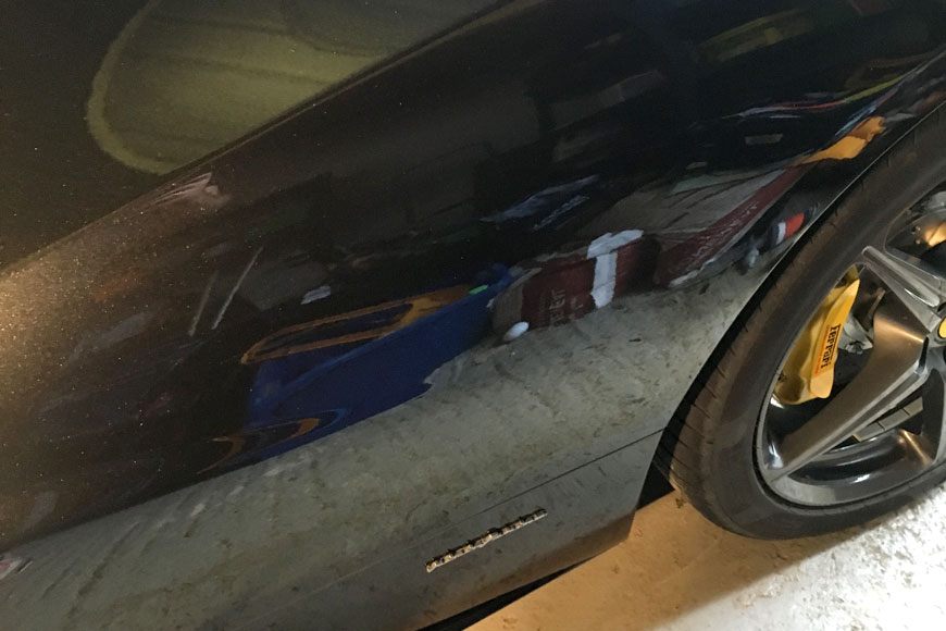 To give the Ferrari it’s best start with the new owner, GYEON Q2 MOHS Quartz coating was used to ensure a hardy layer that protects against future marring, swirls and light abrasions. The “self-cleaning and drying” hydrophobic Q2 SKIN coating means that future washes are completed with ease, with minimal contact.